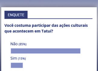 Em enquete realizada pelo jornal O Progresso de Tatuí, 15% responderam que costumam participar das ações culturais de Tatuí. Em contrapartida, 85% disseram...