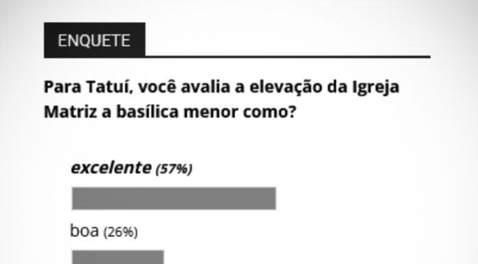 Nesta semana, a enquete do jornal O Progresso de Tatuí, promovida pelo site de notícias (www.oprogressodetatui.com.br), indicou que 57% dos tatuianos consideram como...