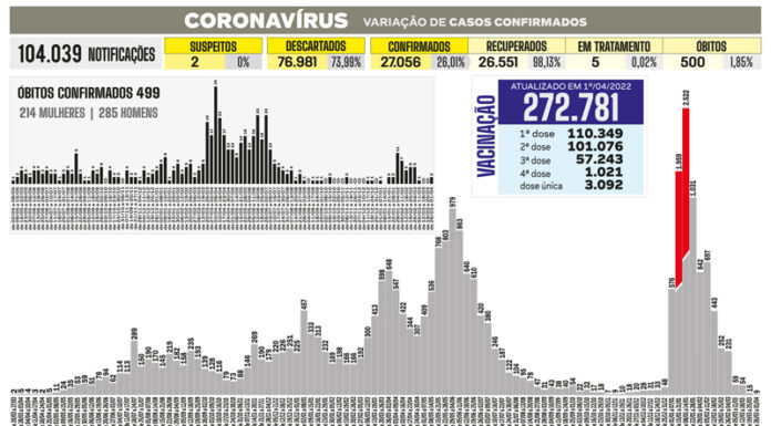 Boletim epidemiológico desta 3ª informa 5 infecções por Covid-19
