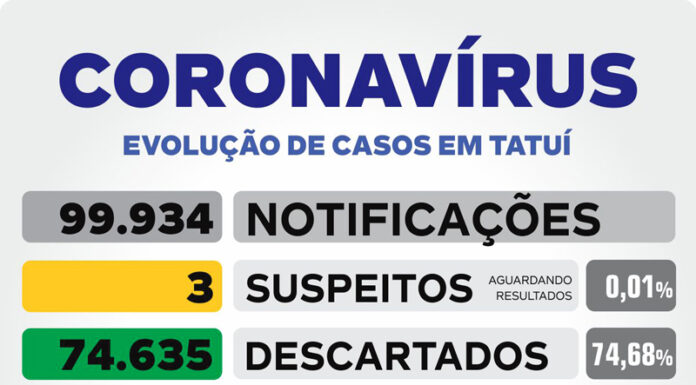 Tatuí se aproxima de 100 mil notificações de Covid-19 desde o início da pandemia