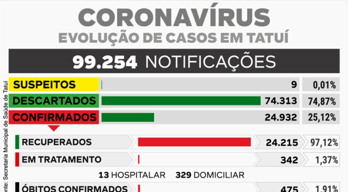 Cinco novos óbitos em decorrência da Covid-19, em Tatuí, foram informados pela Vigilância Epidemiológica, pertencente à Secretaria Municipal da Saúde, na manhã desta...