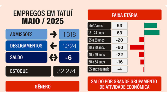 Empregos em Tatuí perdem 6 vagas em maio