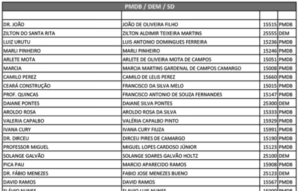 CONFIRA LISTA DE CANDIDATOS A VEREADOR