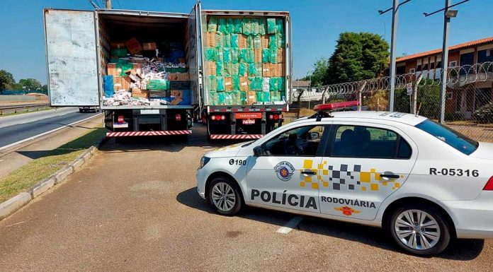A equipe do 5º Batalhão de Polícia Rodoviária (BPRv) de Tatuí localizou 990 mil maços de cigarros contrabandeados em dois caminhões, na rodovia...