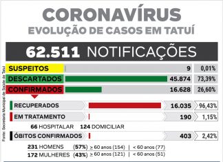 Tatuí ultrapassa marca de 400 vítimas fatais do coronavírus