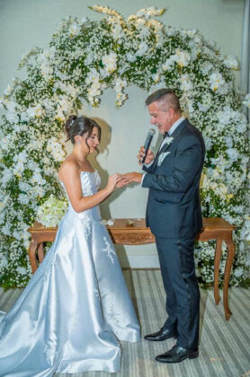 Casaram-se no último sábado do ano, no Via Blanc Hall, Claudio Campolim e Beatriz – maquilada e penteada por Day Zani. Beatriz usou um vestido da Victoria Alta Costura.