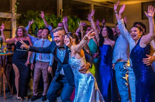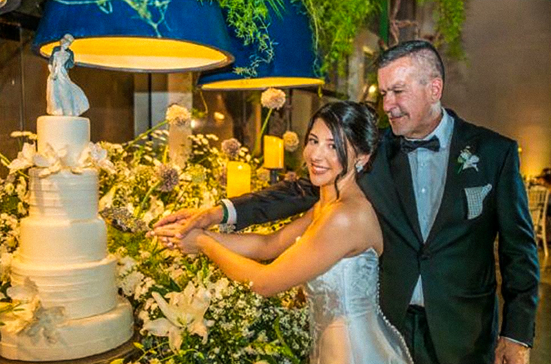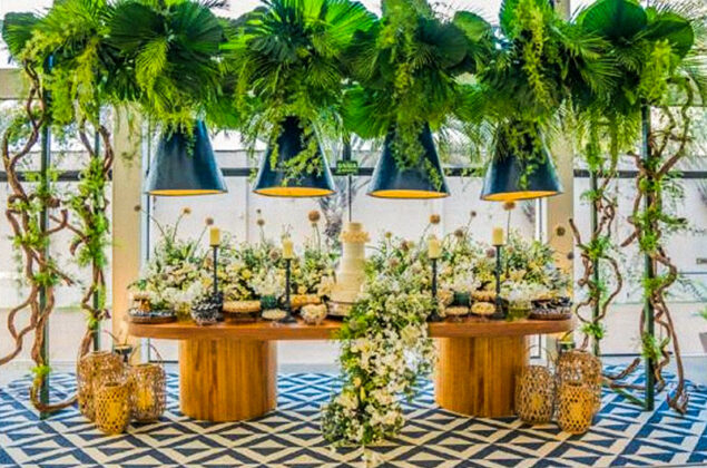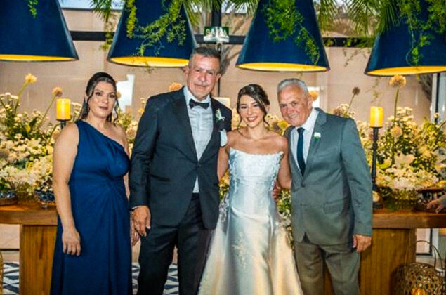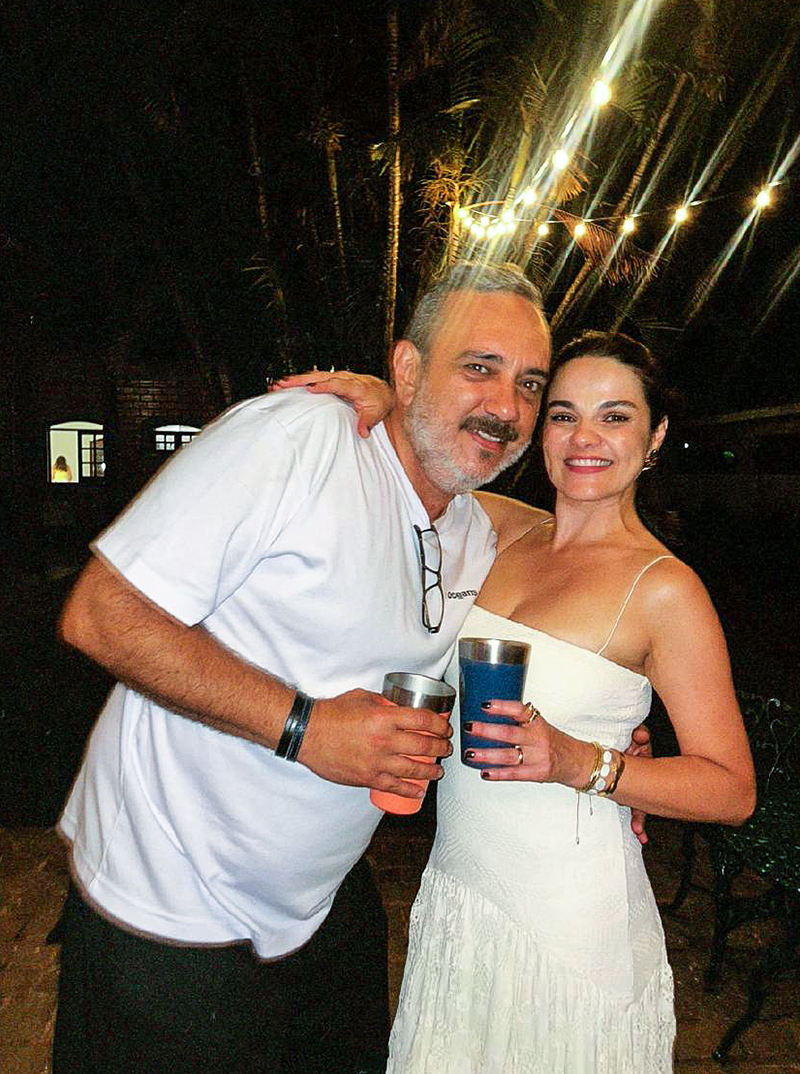 A cerimônia contou com a trilha musical da camerata Bravo. O cardápio foi preparado pelo chef Thiago Medeiros, em uma bela mesa de doces de Clara & Cia. e gelato da Borelli, de propriedade dos noivos.