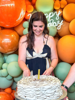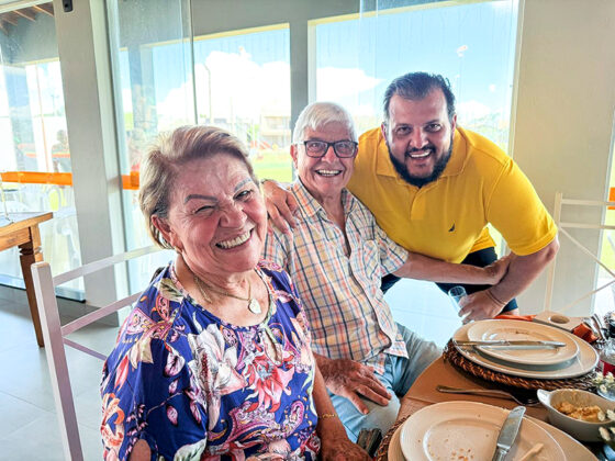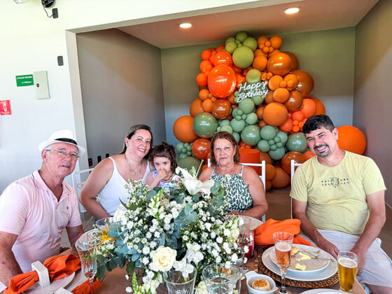 Kátia Olivier Spada aniversariou e comemorou no último domingo de 2025 em uma festa quase surpresa no salão de eventos do condomínio São Marcos, com menu preparado por Kiki, do Lecomkré; bolo e doces da Clara & Cia.