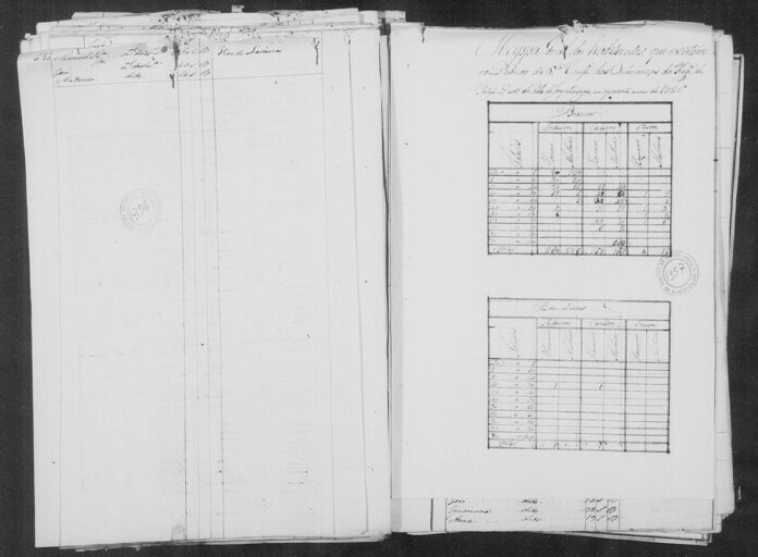 Resumo do mapa geral aponta Tatuí com 902 habitantes em 1826; desses, apenas dois pretos livres; outro registro do mesmo ano, cita 1.398 moradores, com 215 escravos (Foto: Maços de População 1818-1846)